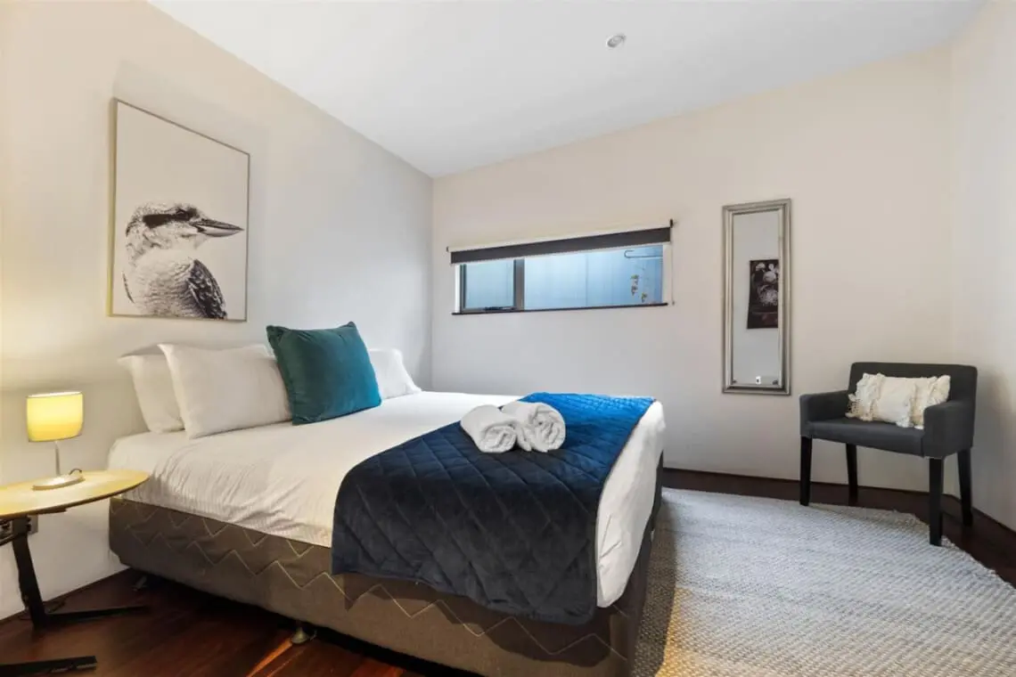 Bedroom 1 with a king bed and bedrooms 2, 3, & 4 with two single beds each. Single beds can be pushed together to form king beds if preferred. We supply high-quality linen and fresh towels for all guests.