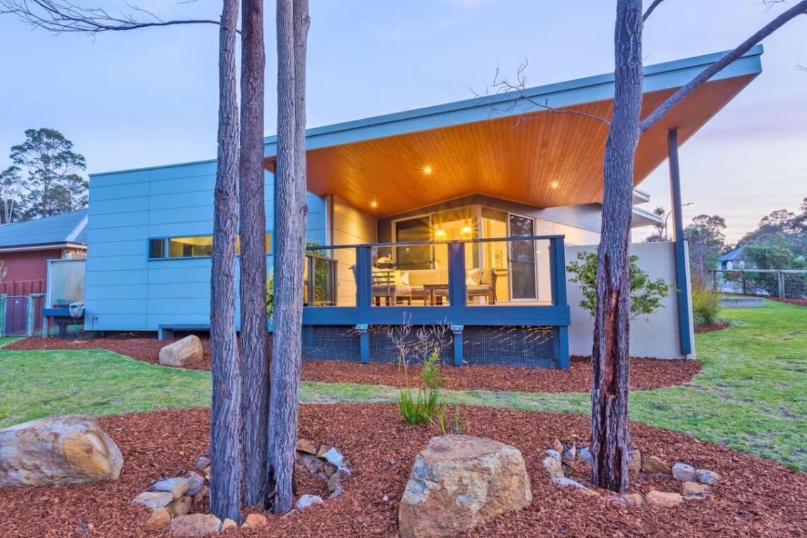 Wake to the sounds of nature, explore river trails or nearby wineries, then return to unwind by the custom-built fireplace. Thoughtfully designed and built from rammed earth, Banyandah combines modern comfort with sustainable living — naturally energy-efficient, carbon-positive, and full of warmth and charm.