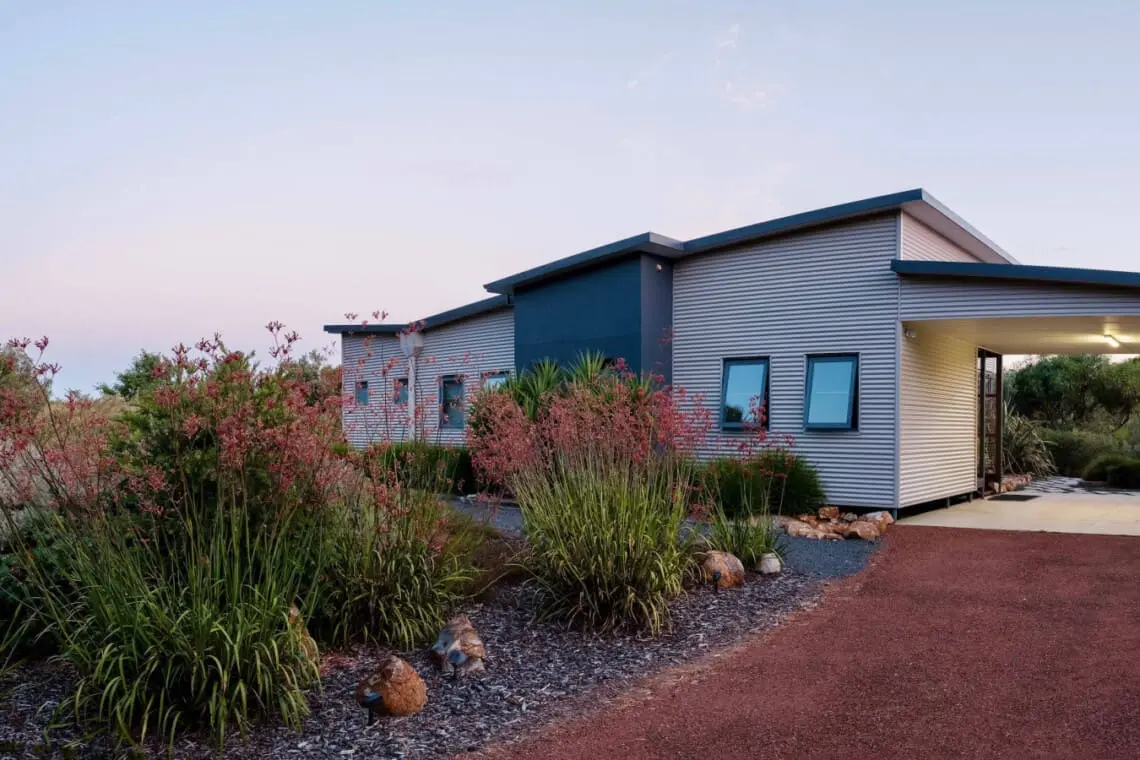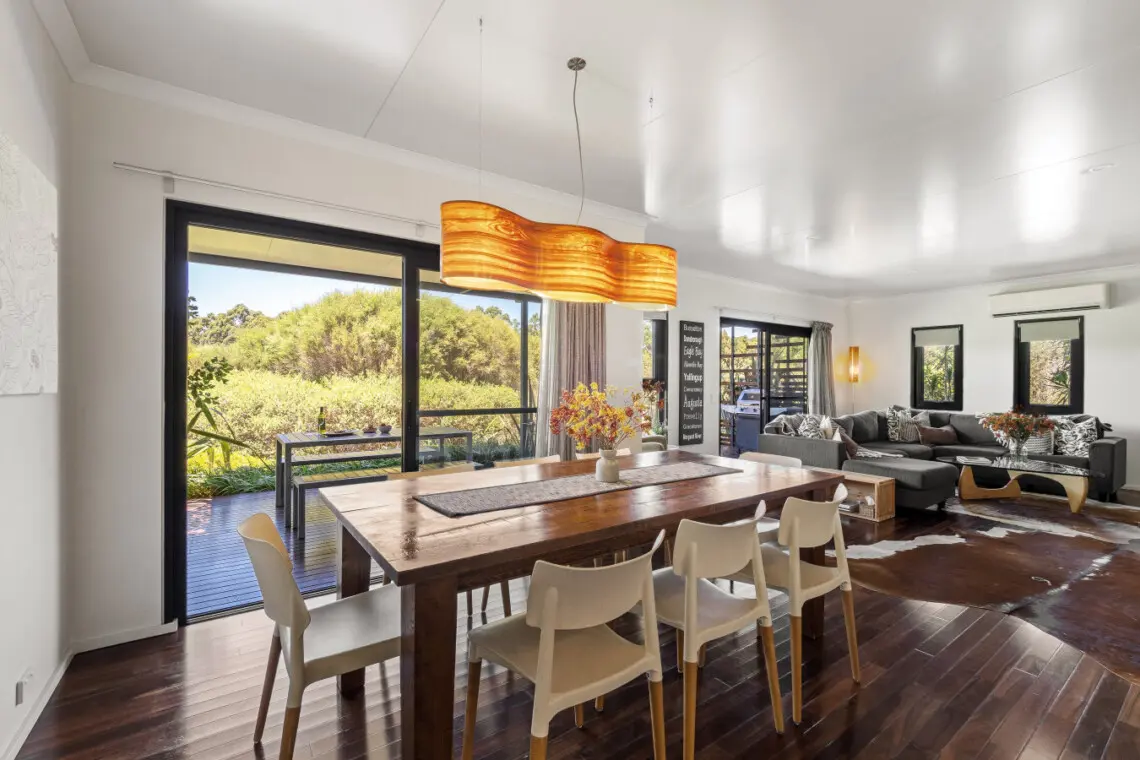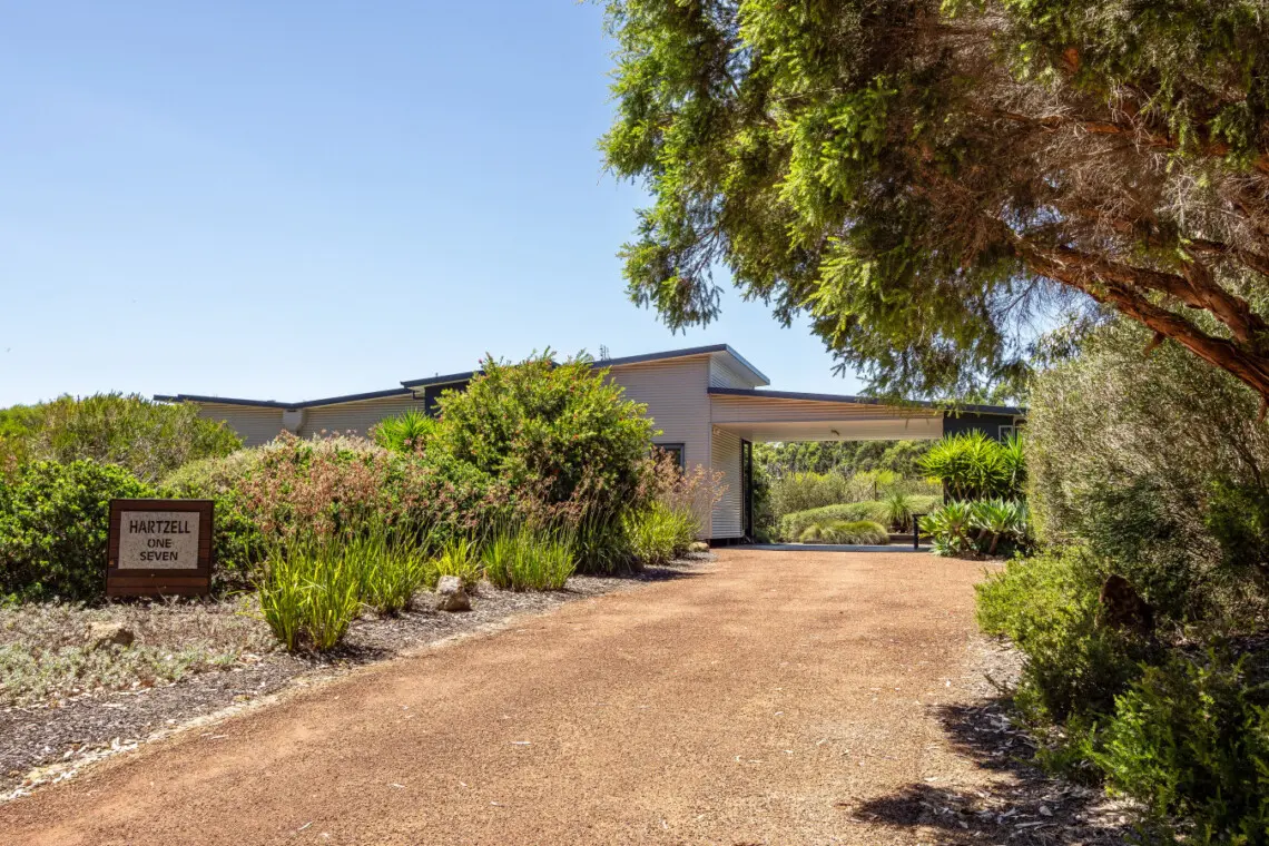 Welcome to Hartzell One Seven, a stylish eco-friendly chalet nestled on a working vineyard along the renowned Caves Road in Wilyabrup. Perfectly positioned between Dunsborough and Margaret River, this contemporary single-storey retreat offers a luxurious country escape surrounded by rolling vines, peaceful bushland, and abundant wildlife. Thoughtfully designed for comfort and relaxation, it features warm timber finishes, quality furnishings, and expansive glass doors that frame tranquil views of the dam and natural landscape.