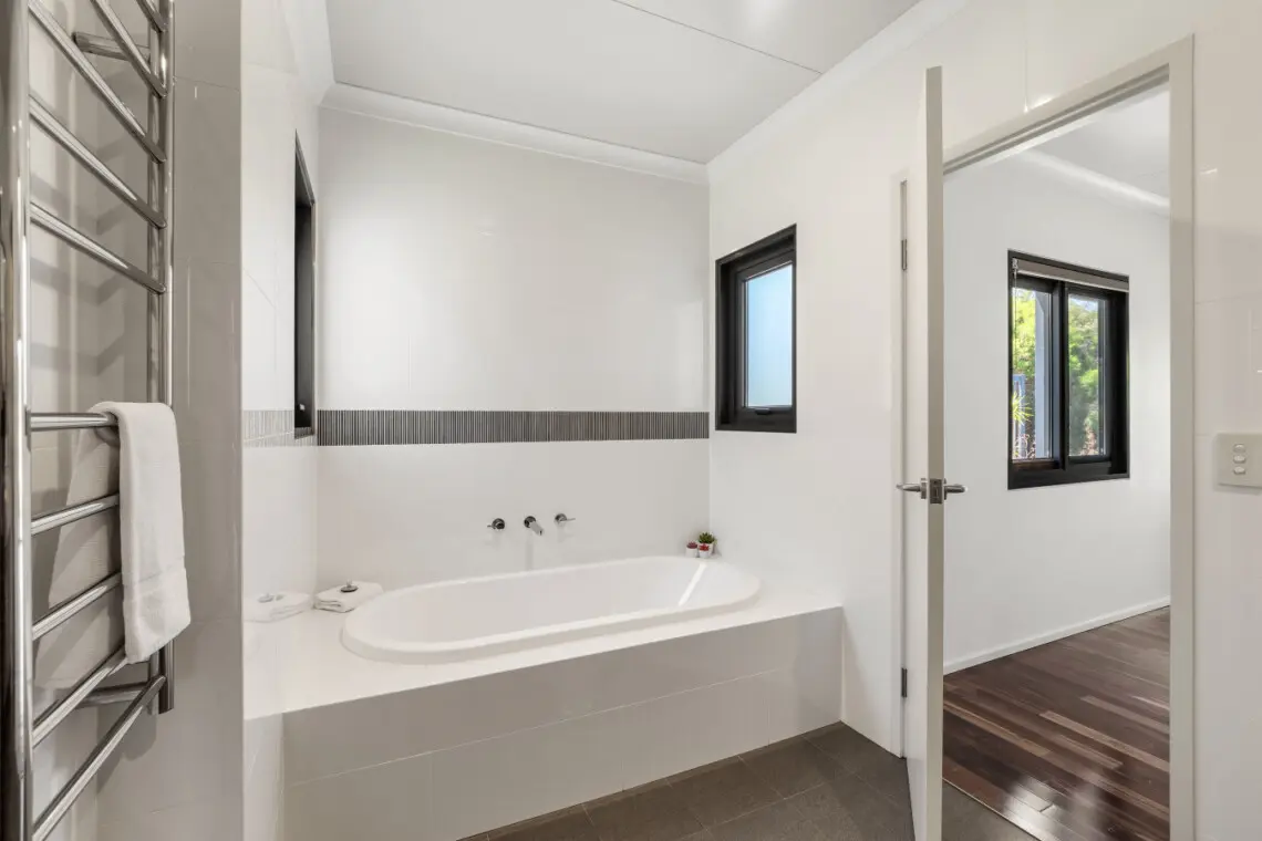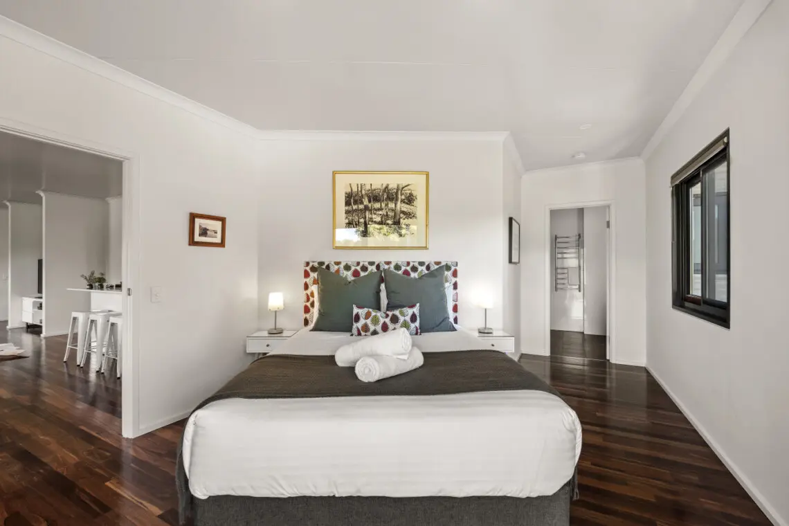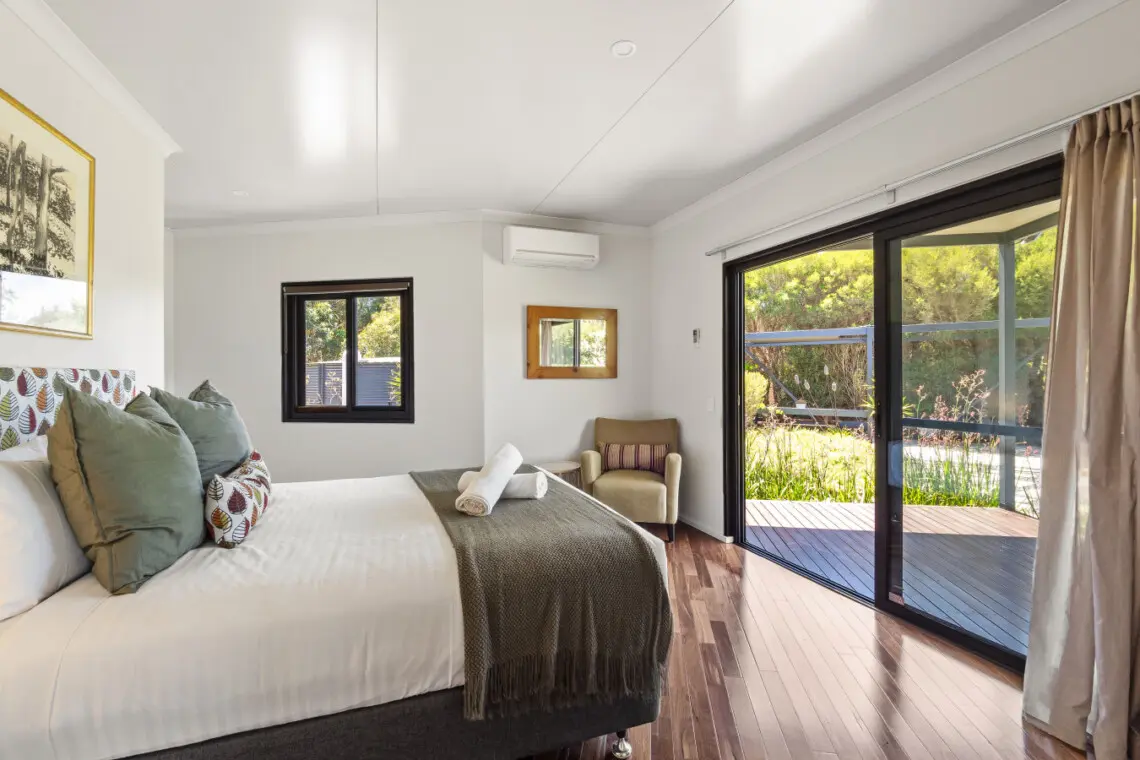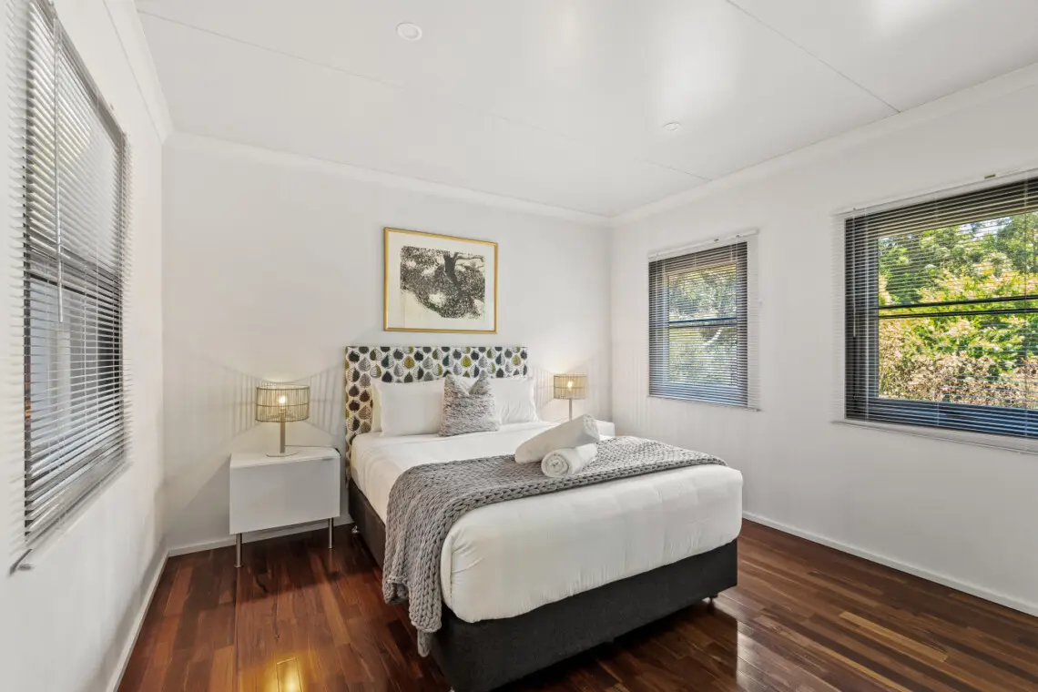 – Bedroom 1: Queen bed (ensuite) (Reverse-cycle Air-conditioning)