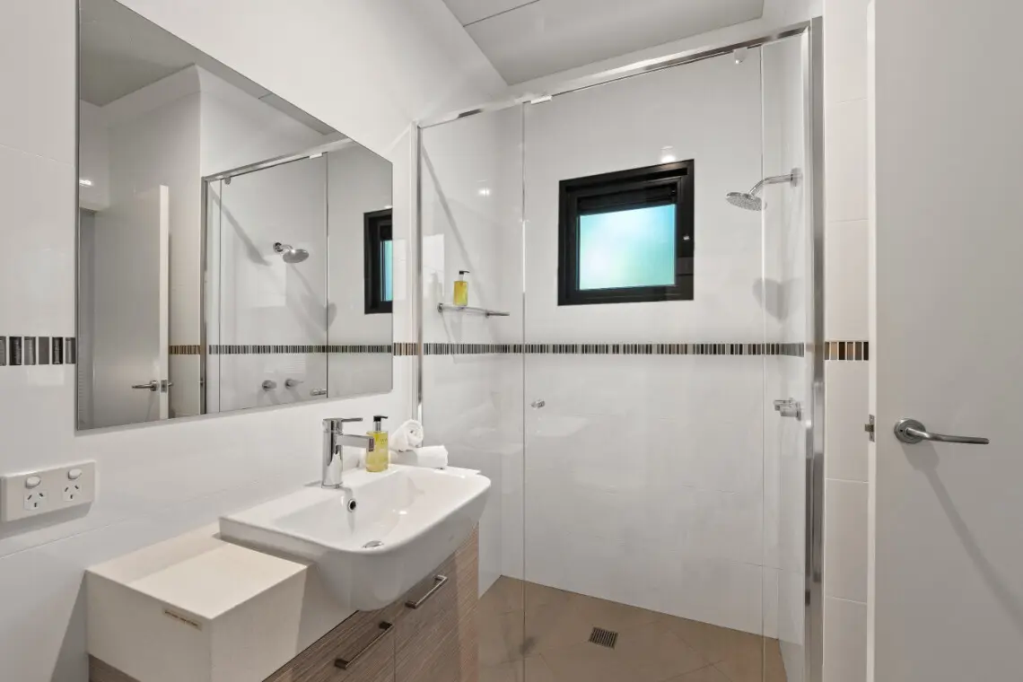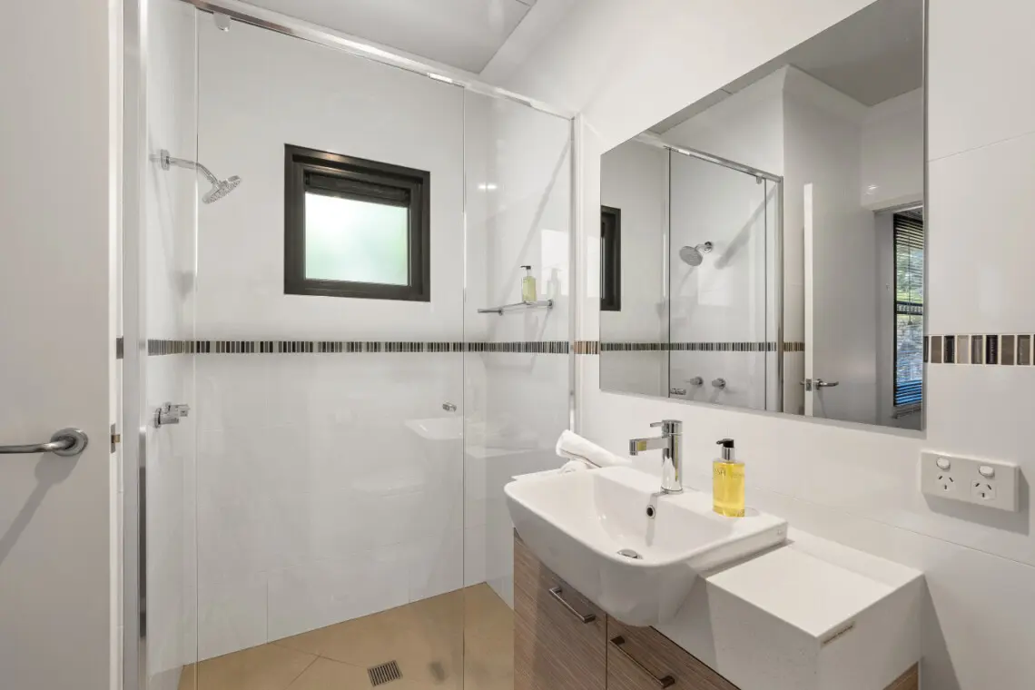 The property features three ensuite bathrooms, each with a walk-in shower and toilet, plus 24/7 hot water.