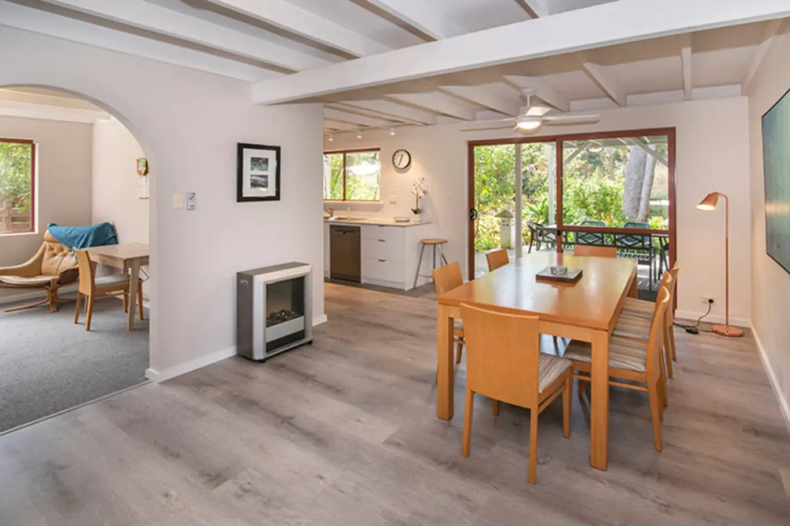Relax on the verandah or balcony with a coffee or wine and enjoy the peaceful birdsong. Inside, you’ll find open plan living, a full kitchen, and comfy bedrooms. It’s your private sanctuary in the heart of Margaret River.