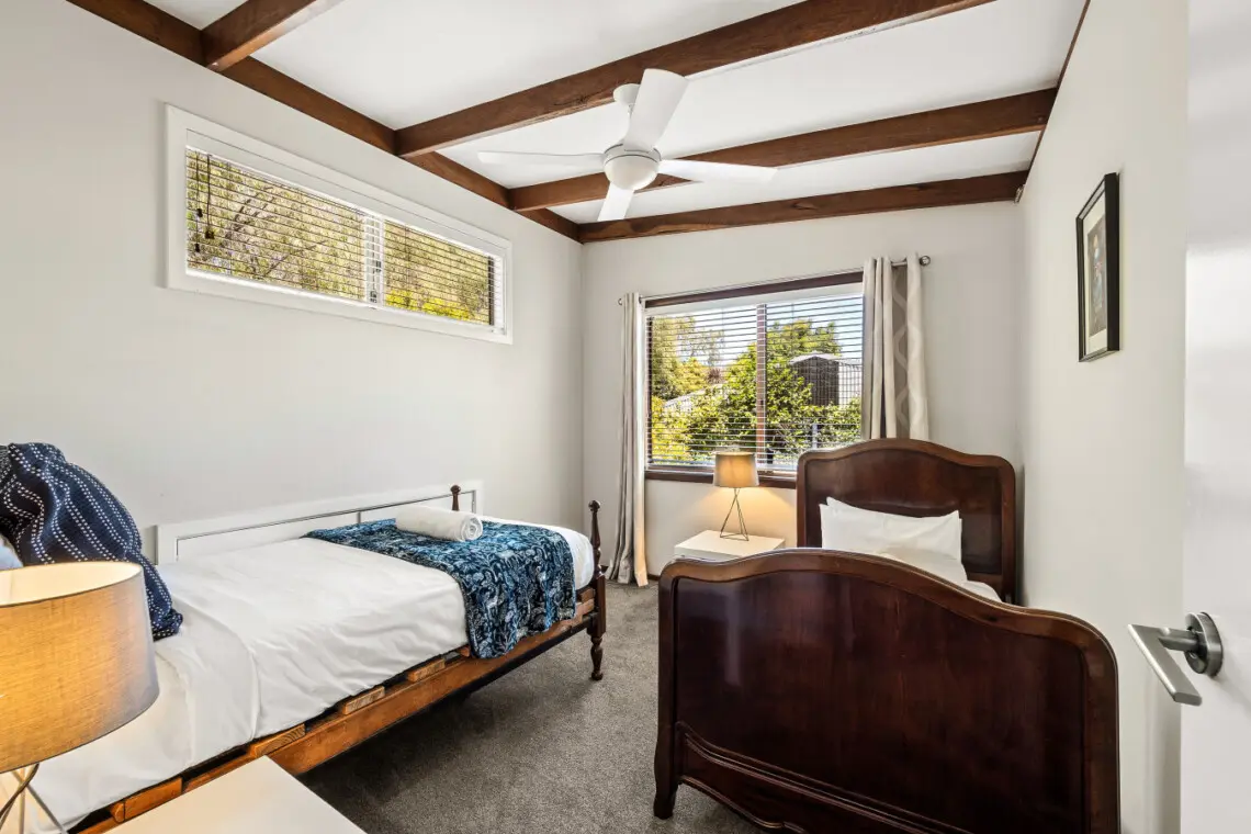 Bedrooms 1, 2, and 3 each feature a queen bed, while Bedroom 4 offers two single beds. We supply high-quality linen and fresh towels for all guests.