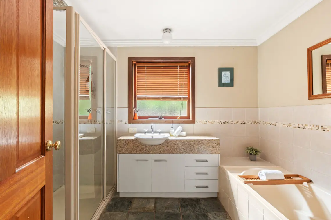 – Bedroom 1: King bed (Reverse-cycle Air-conditioning)