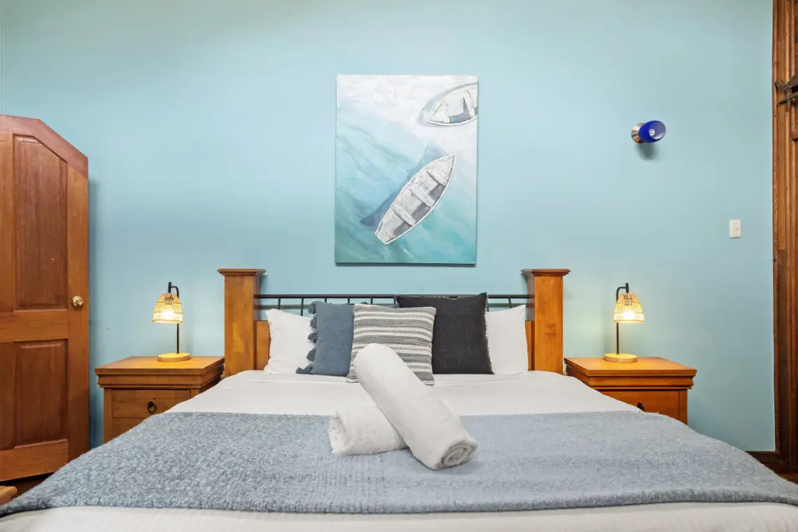 – Bedroom 2: Queen bed (Reverse-cycle Air-conditioning)
