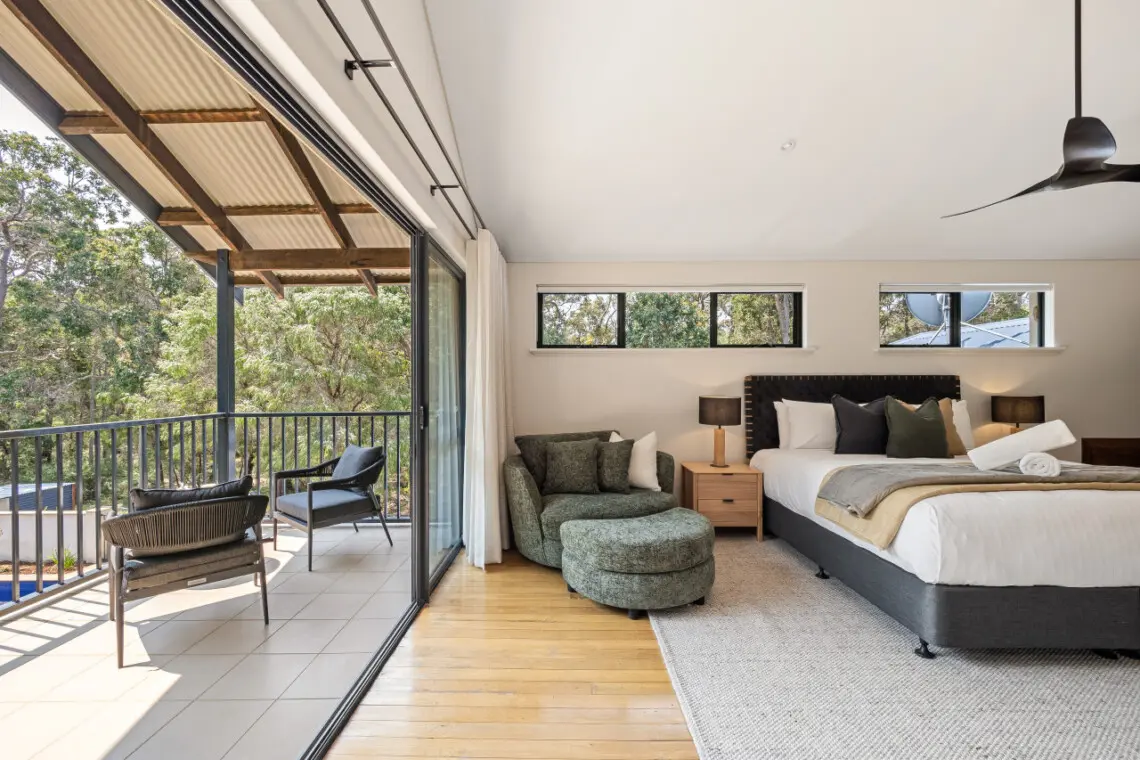 Step outside to soak up the sun by the sparkling pool, gather around the wood-burning fireplace, or enjoy a quiet drink on one of the wide decks surrounded by native bushland. Indoors, you’ll find a thoughtful layout with a fully equipped kitchen, open-plan living spaces, and all the amenities you need for a comfortable stay.