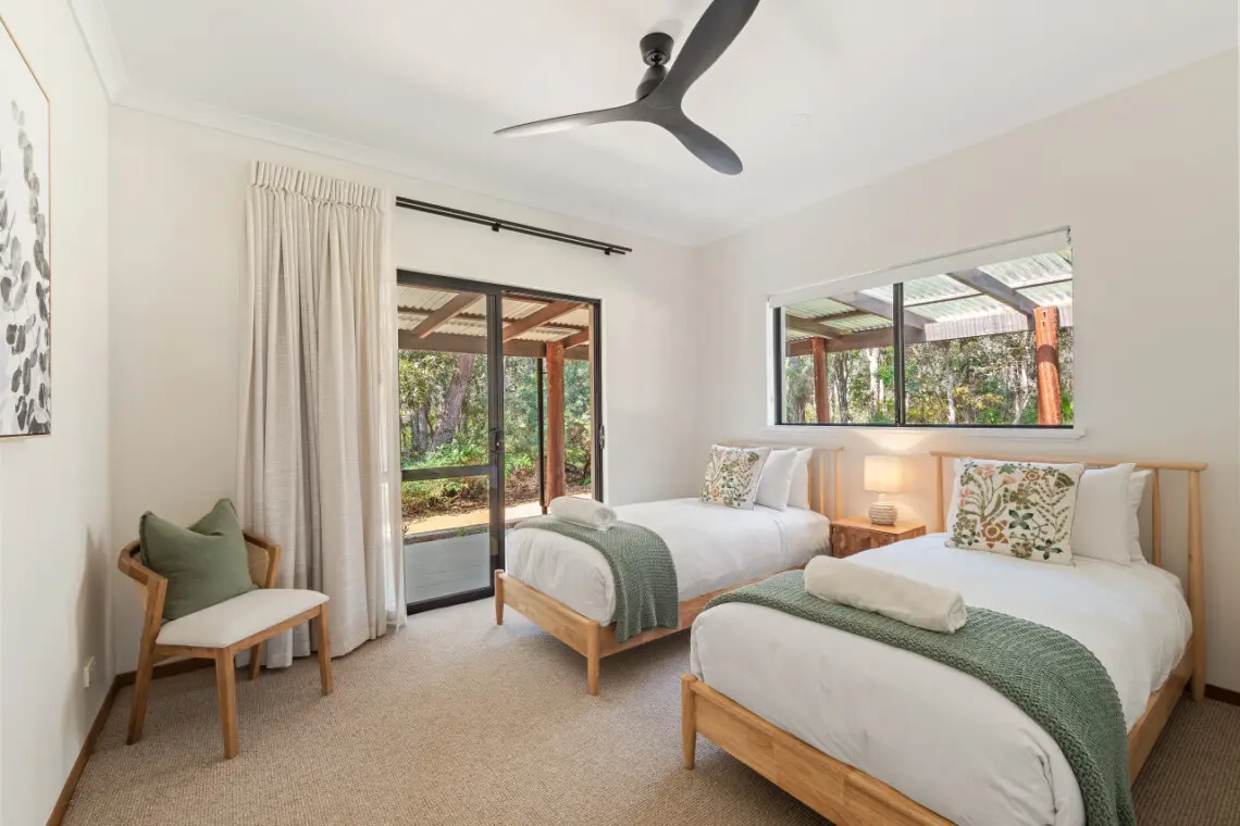 Bedrooms 1 and 2 each have a king bed, and Bedroom 3 has two single beds (can’t be pushed together). We supply high-quality linen and fresh towels for all guests. Pool towels not provided.